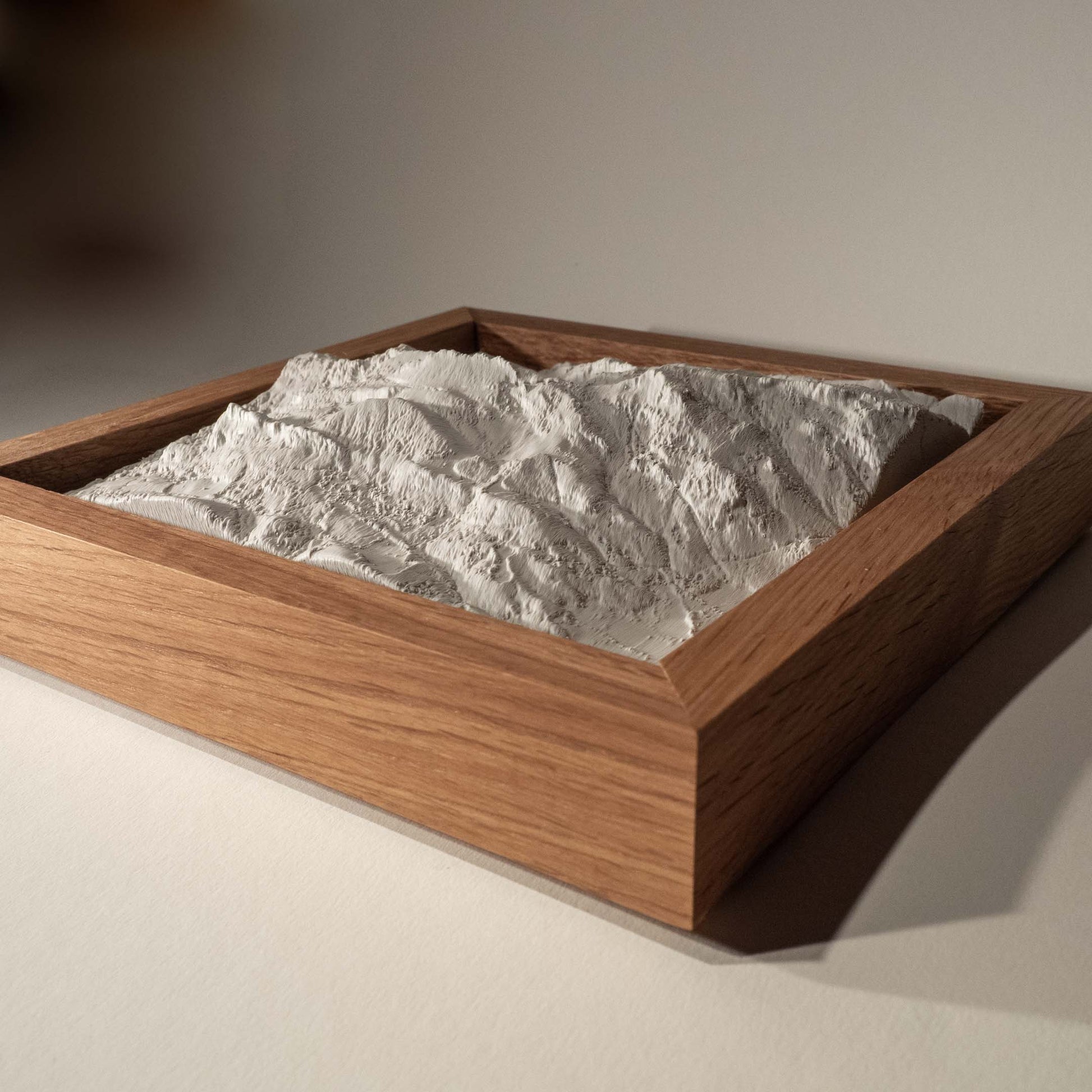 Jedes Bergmodell wird individuell für dich im 3D-Druckverfahren gefertigt. Die Form basiert auf echten Geländedaten.