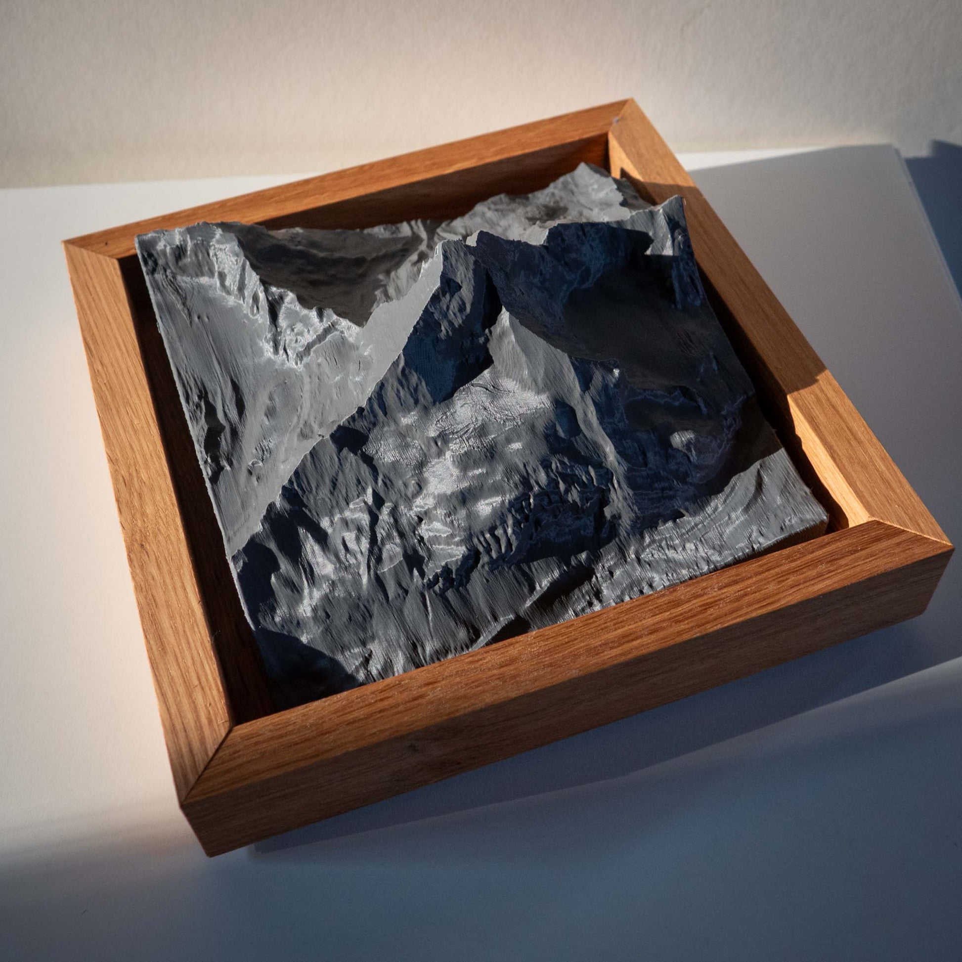 Jedes Bergmodell wird individuell für dich im 3D-Druckverfahren gefertigt. Die Form basiert auf echten Geländedaten.
