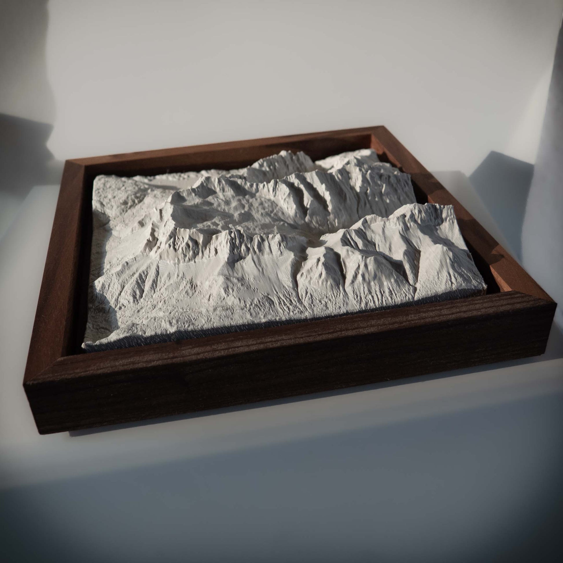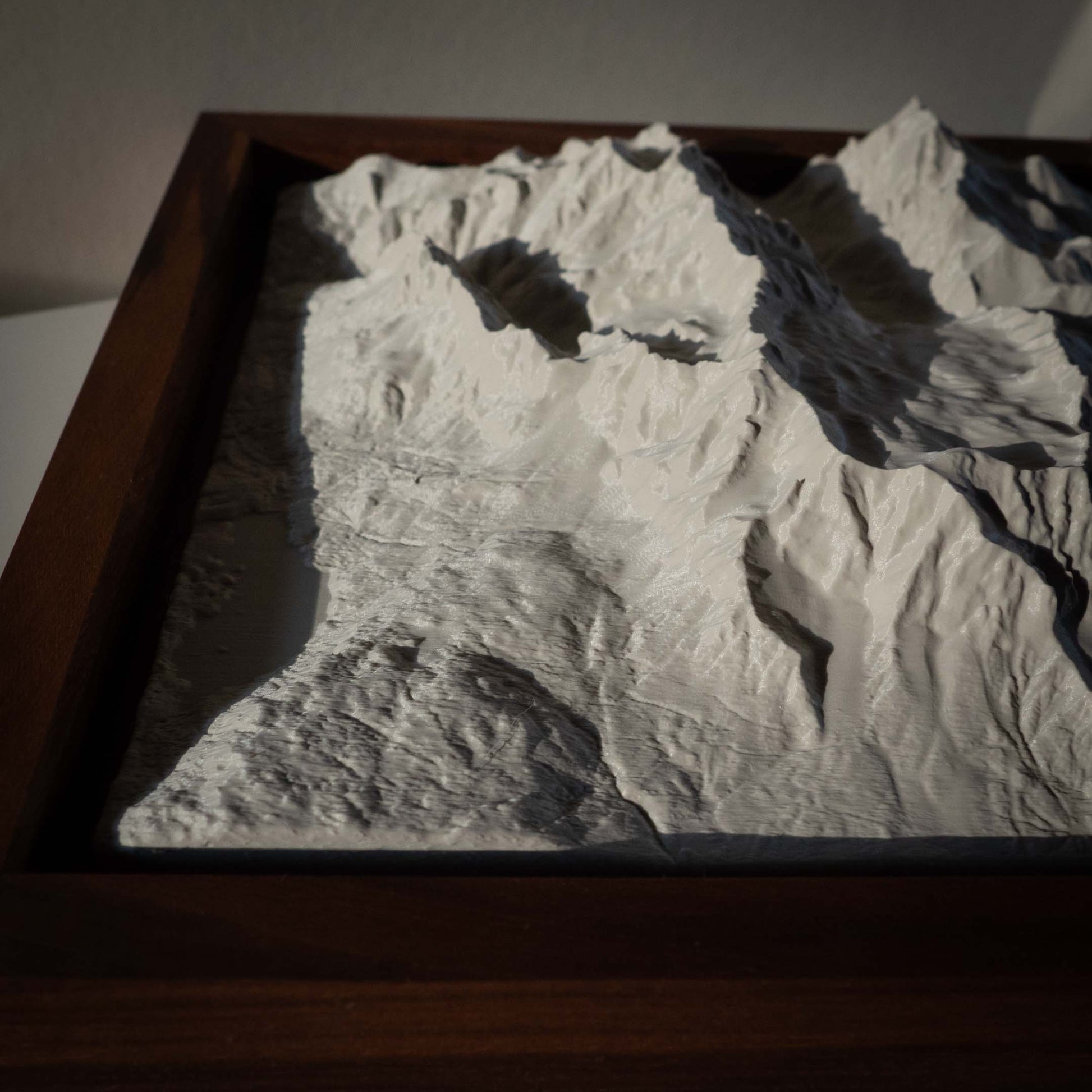 Jedes Bergmodell wird individuell für dich im 3D-Druckverfahren gefertigt. Die Form basiert auf echten Geländedaten.
